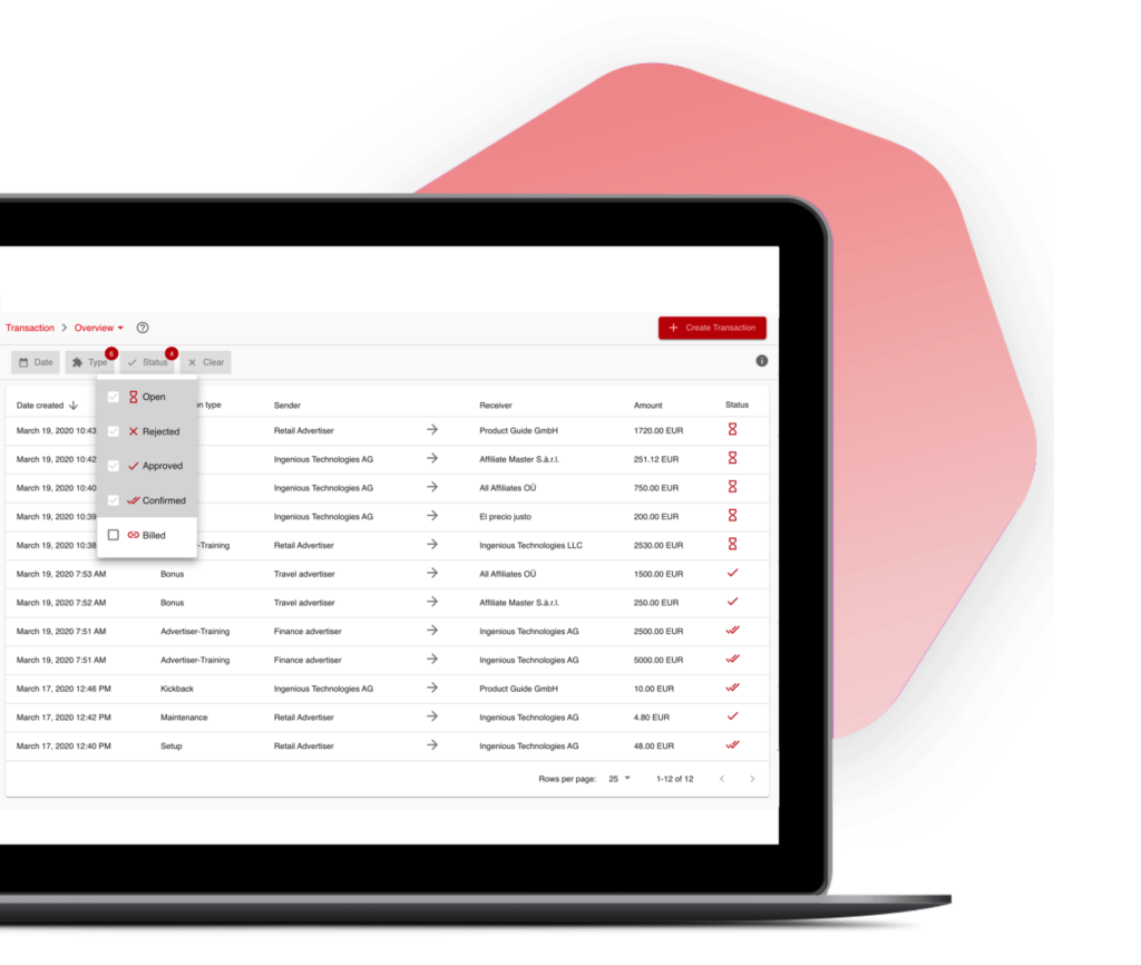 Maximale Transparenz bedeutet auch, dass alle Beteiligte (Partner, Advertiser, Entities, …) stets Zugriff auf ihre individuelle Kontoübersicht haben. In unserem Finance Product liegt dort zudem ein Journal der Änderungen, die an diesen Konten durchgeführt wurden. Somit lassen sich alle Änderungen zu jederzeit nachvollziehen. Zu den erwähnten Kontobewegungen kann es sowohl aus erfolgsbasierten Gründen (Ad-Impressions, Klicks, Leads, Conversions, …) als auch aus nicht erfolgsbasierten Gründen (Bonus, Reduktion, Werbebeiträge, …) kommen.